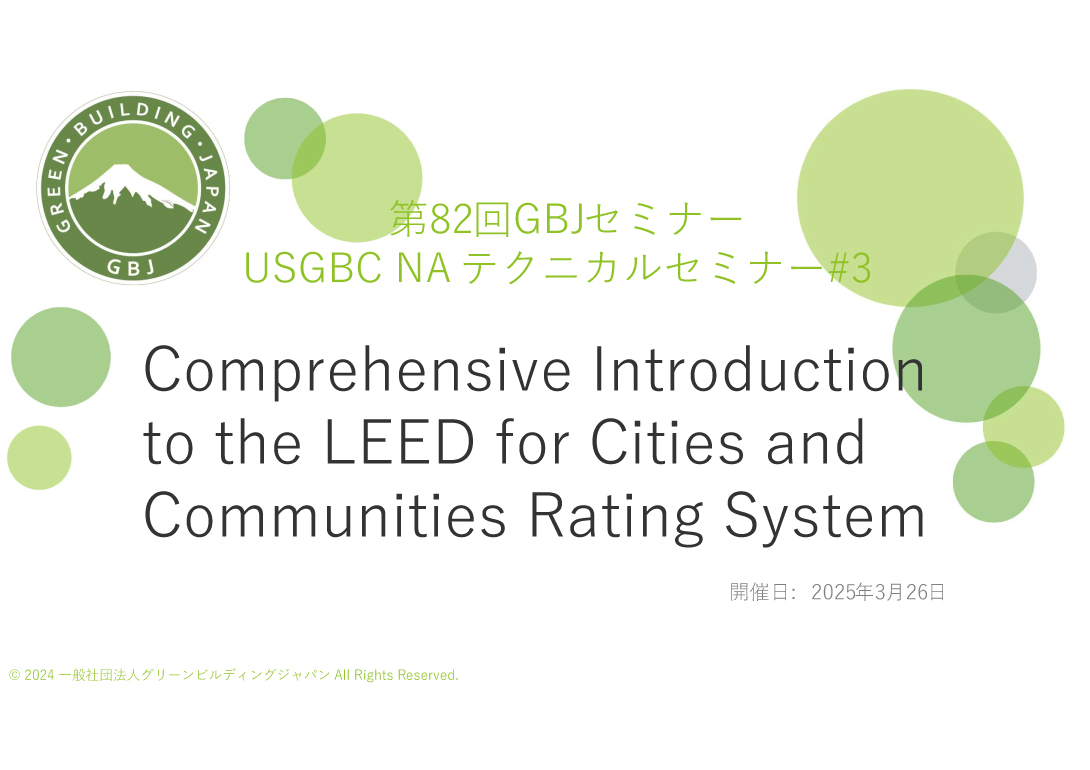 LEED AP(米国のグリーンビルディング専門家の資格)の継続教育(CE)制度の自己研鑽時間に使用できる有料(¥3,000)オンデマンドウェビナー。