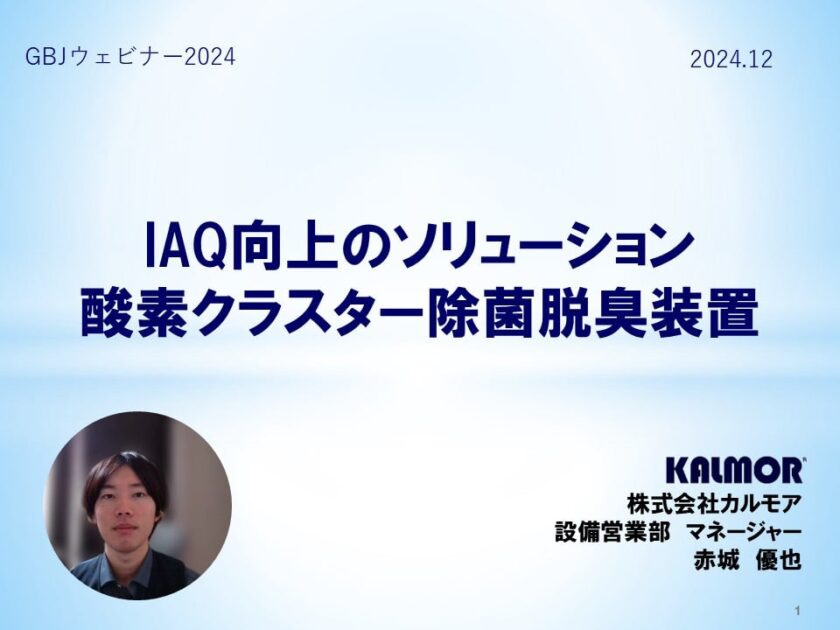 空気の専門会社である株式会社カルモアの、IAQ向上ソリューションとしての酸素クラスター除菌脱臭装置のご紹介となります。